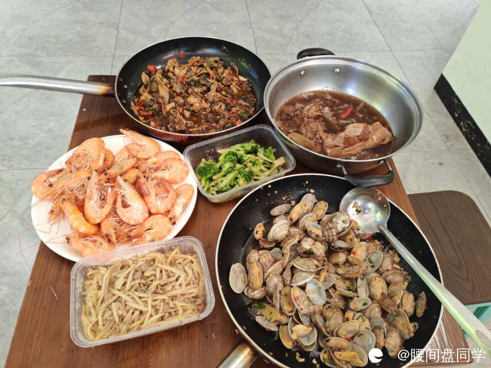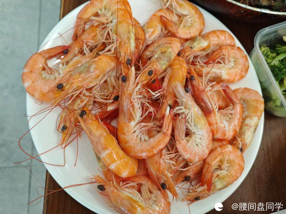 他们吃得可真丰富,好大一个虾,我也不多吃,只捏了五个~
