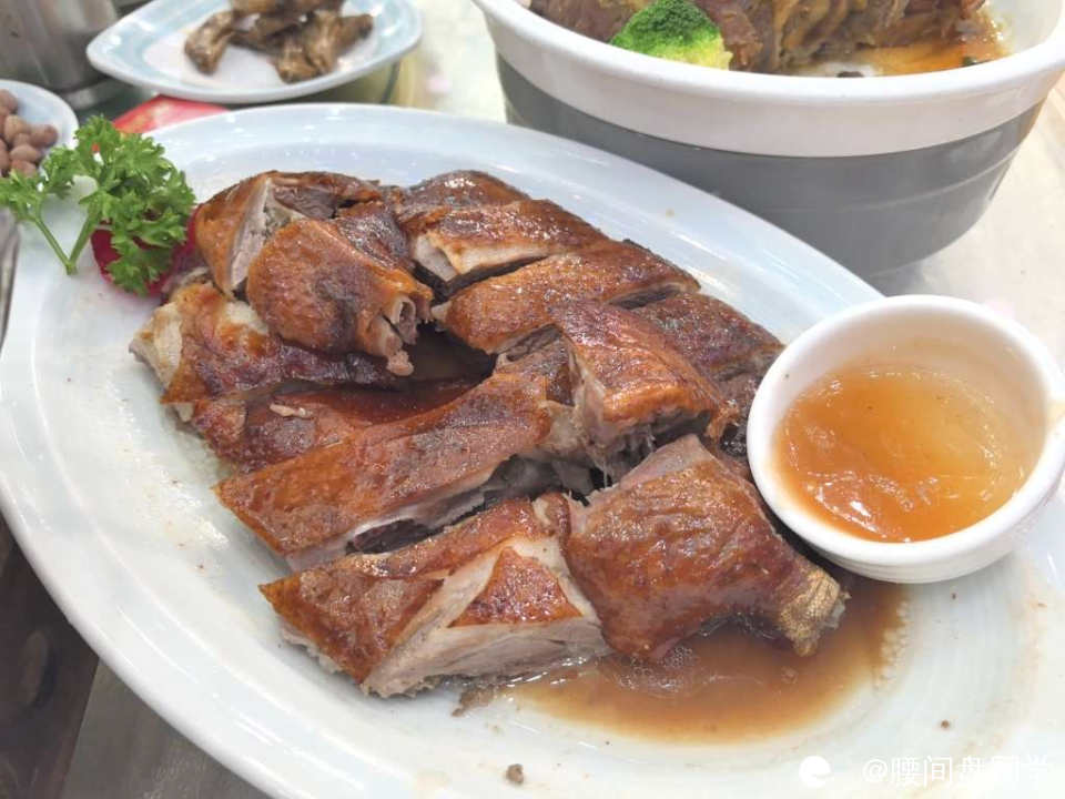 酥脆烤鸭,皮薄肉厚,蘸料酸甜可口~