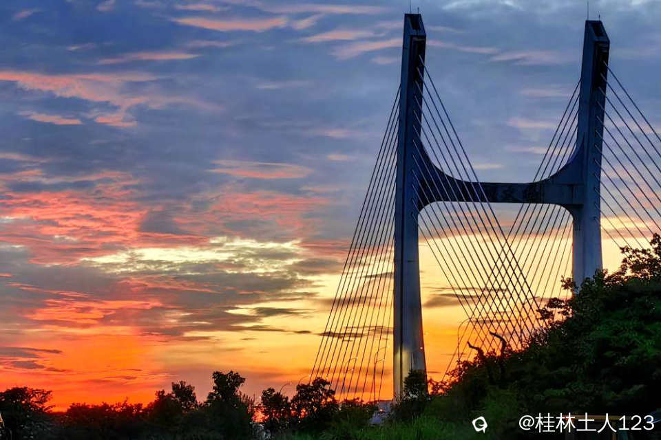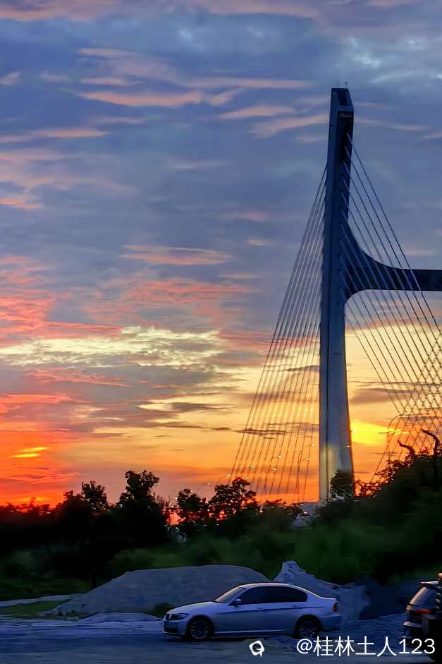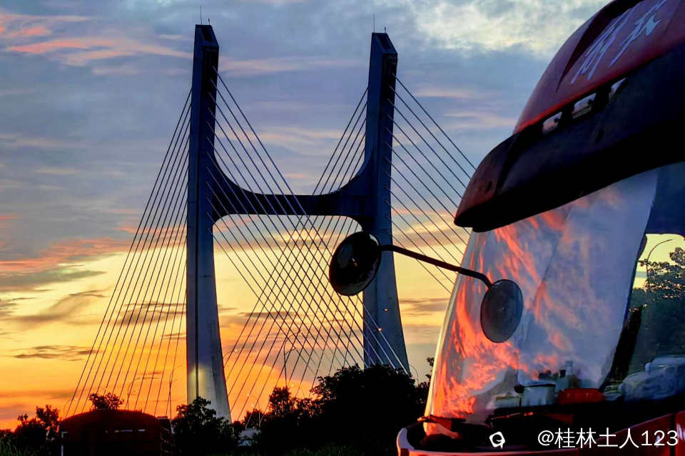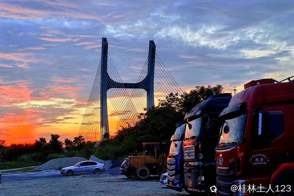 今日桂林,下班路上,路过夕阳下的桥与卡车,静谧而美好。