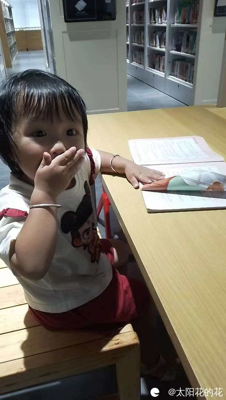 之前交代她来图书馆看书要安静,不能乱跑,她坐下来忍不住想和我说话了就用手捂住嘴巴小声的和我说……