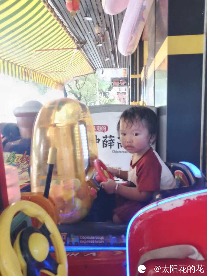 玩的有点热了,后面拉着我的手说要去坐摇摇车……