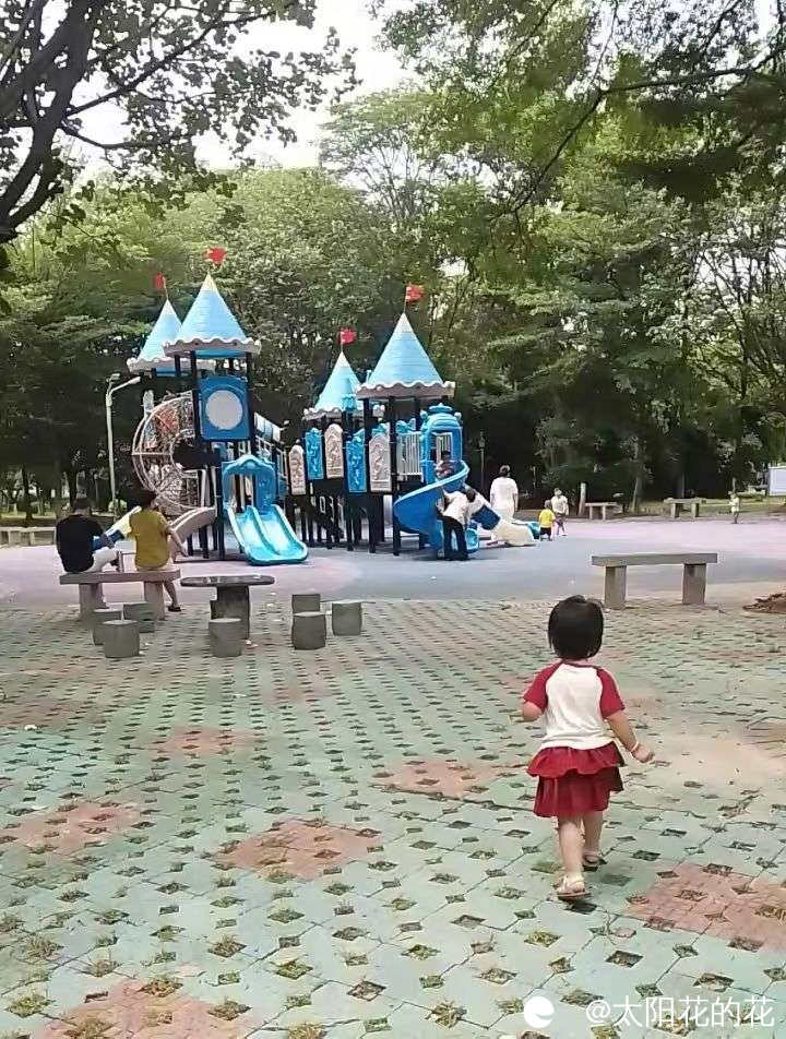 看外面没什么太阳就带小朋友出去逛逛,本来想带她去吃素食自助餐的,在路上小朋友突然和我说不想去吃东西了,想去公园玩滑滑梯,刚好快到公园了所以带她去玩一下滑滑梯……