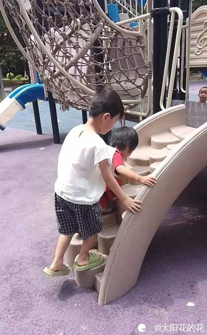 来到公园就直奔滑滑梯去了……