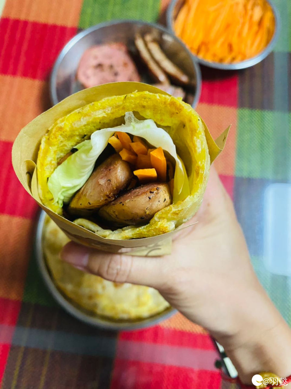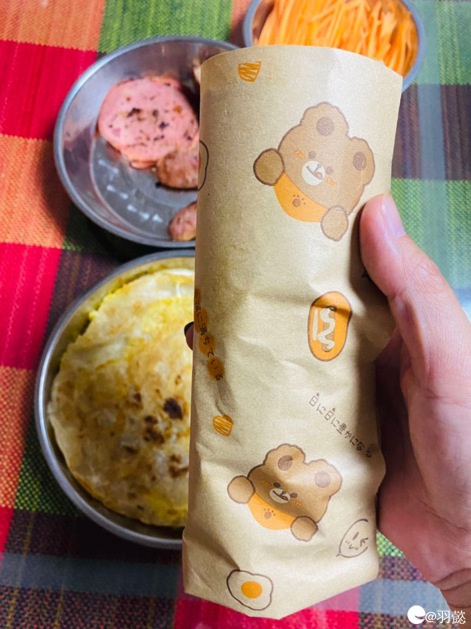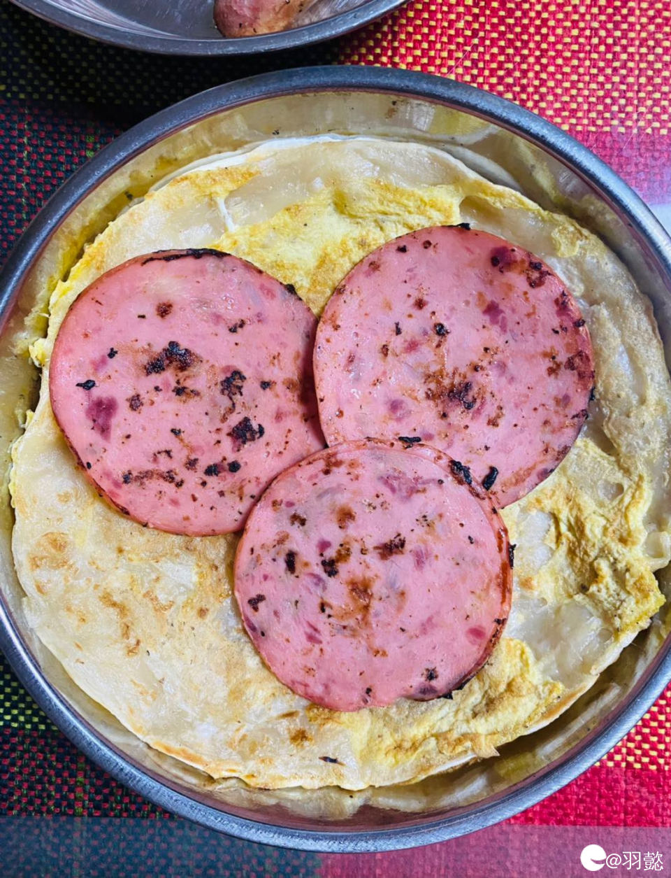 [秀厨艺] 【苏苏】豪华版手抓饼!这个早餐肉多多!