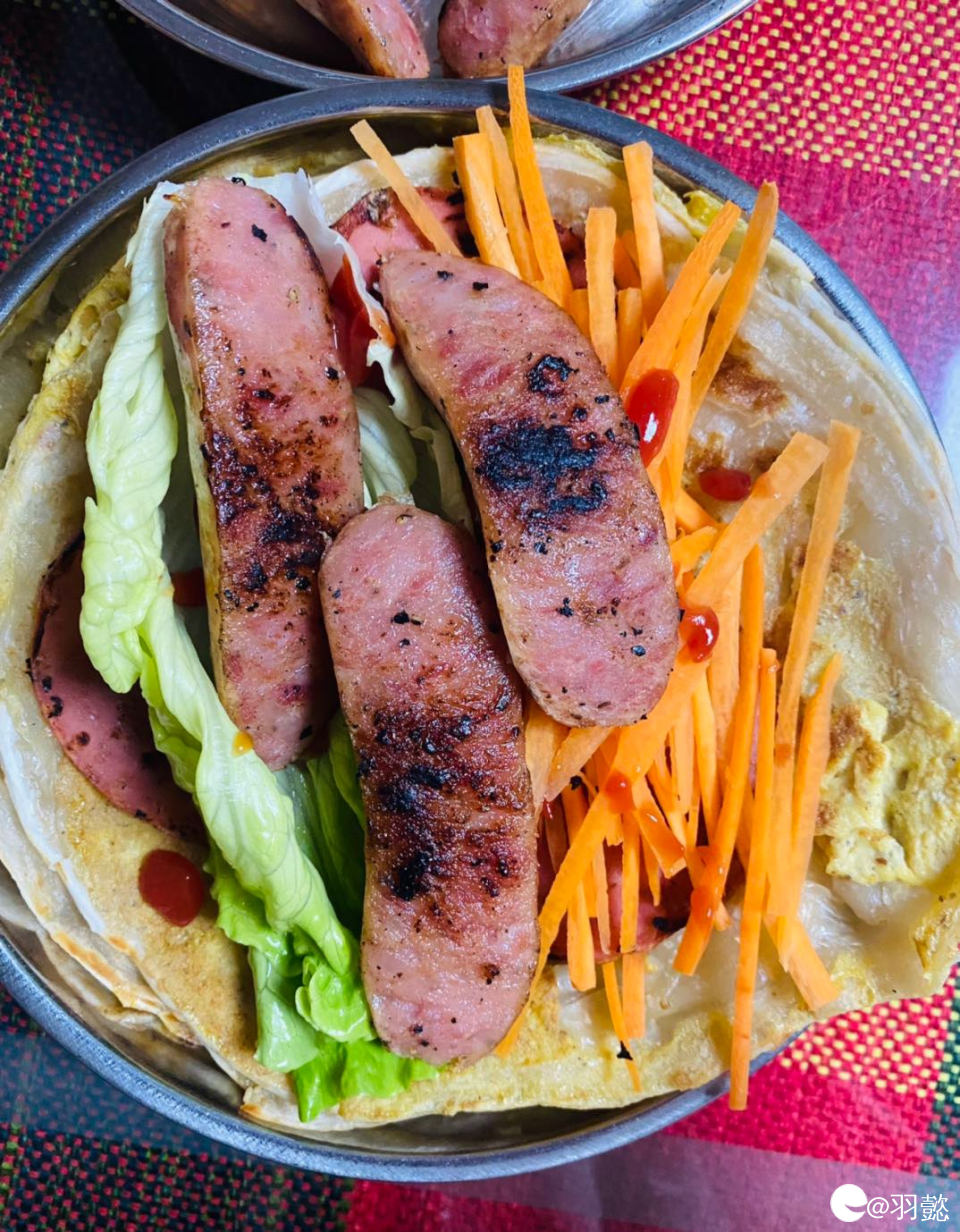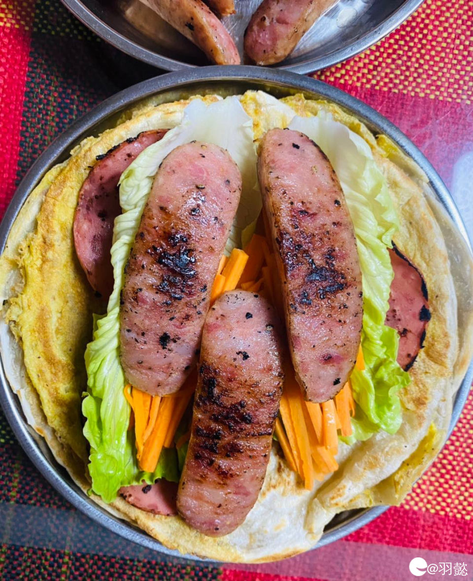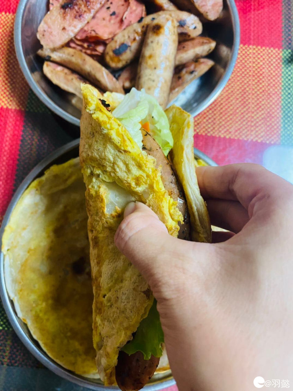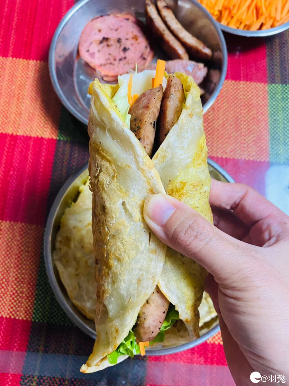 [秀厨艺] 【苏苏】豪华版手抓饼!这个早餐肉多多!