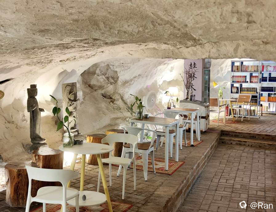 这是桂林第一家藏在溶洞里的书店,外面是个不起眼的小门,里面却别有洞天。