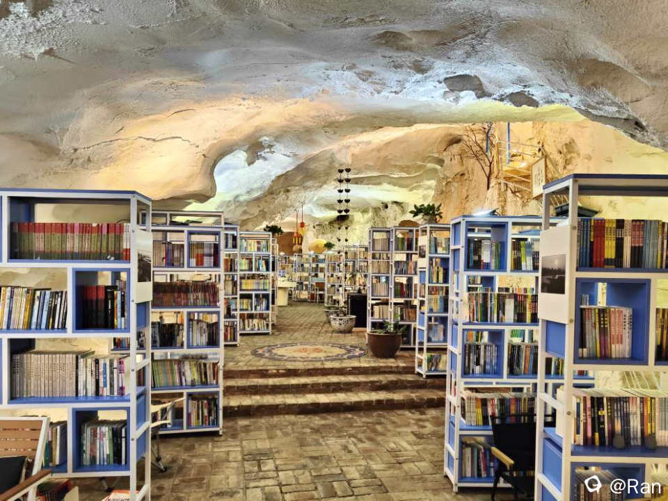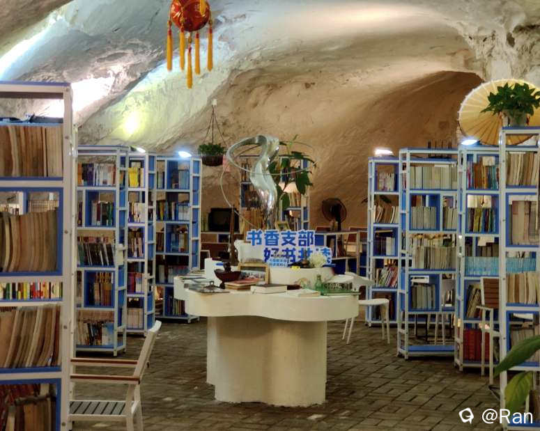 走进书店,整个世界好像安静下来,天然的岩壁冬暖夏凉,带走了身上的燥热,空气中飘散着淡淡的书香,让人不自觉地放轻了呼吸。