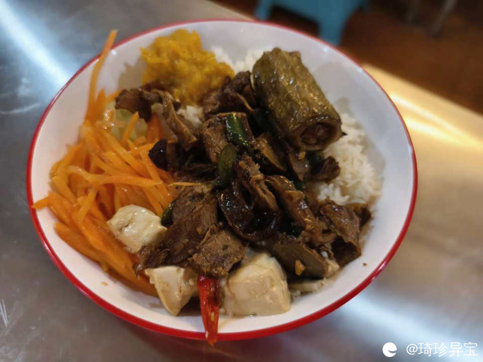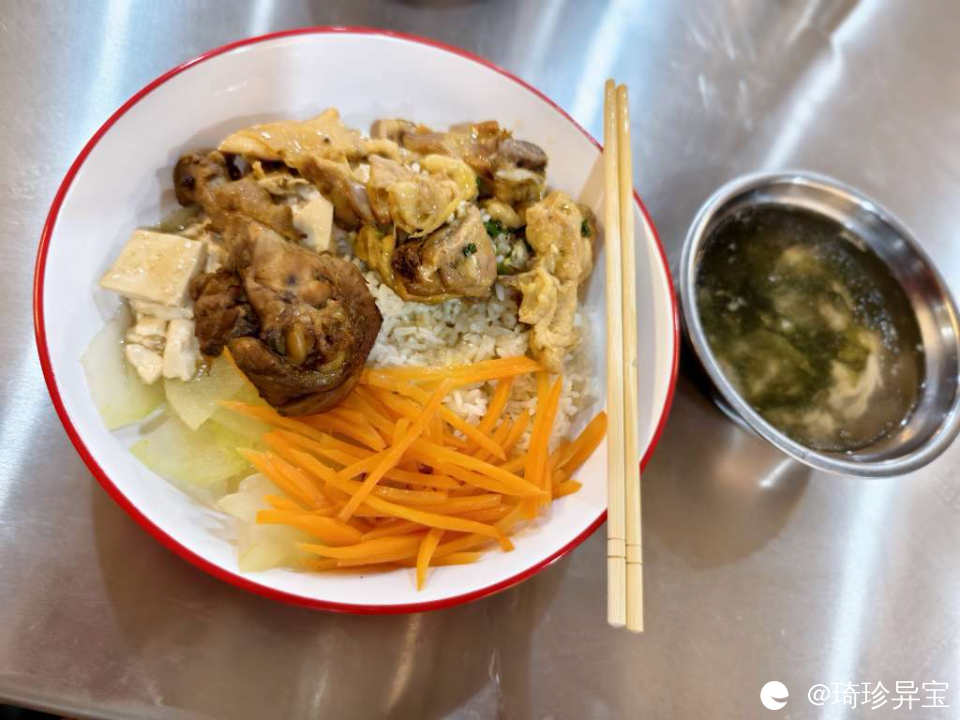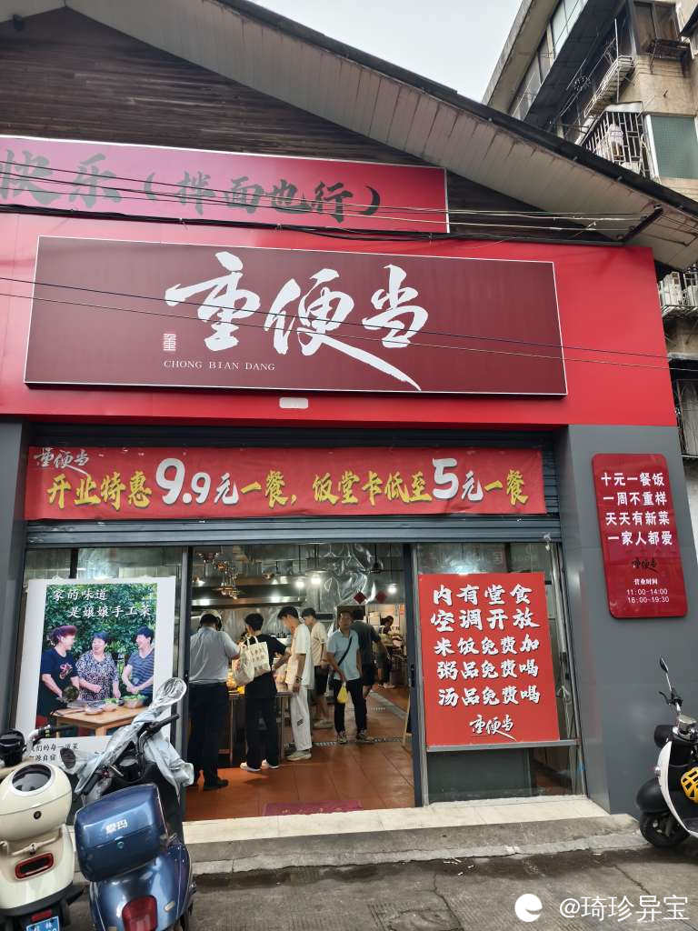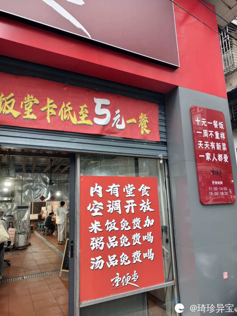 中央尊馆对面,新开堂食一个多月的【重便当】,特别适合不想开火做饭的懒人,或者是打工一族。食材都是每天采买新鲜的,没有预制菜,单点九块九一份,一个荤菜两三个素菜,加菜3~5块,米饭可以加还有免费的小米粥和汤;办卡300吃60次,合五块一次,比嗦米粉还划算。