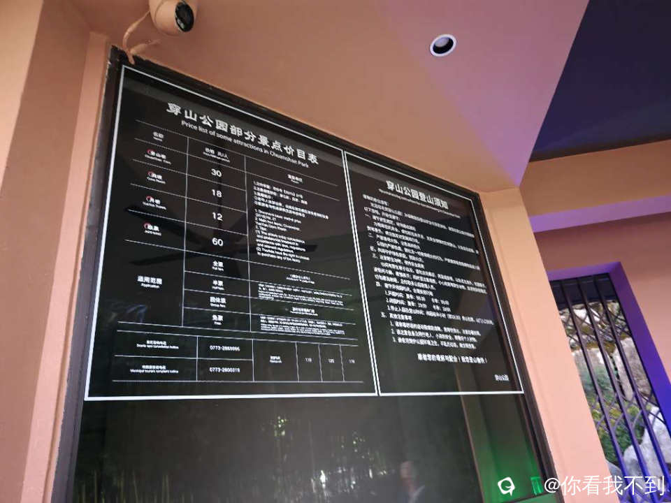 天色已晚,下山回家,发现新贴了一个价目表,穿岩也要开始收钱了,分景点收费,去完所有的洞要60元,本地人没有优惠。