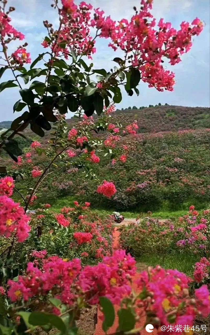 全州县咸水镇千亩花海种植基地内10多万株紫微花次第绽放, 争奇斗艳,为炎炎夏日增添一抹亮丽色彩 ,吸引了无数游客前来赏花拍照。