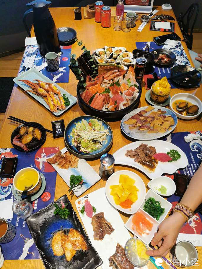 今日最重要的角色:带子刺身、鸟贝、兰花蚌刺身、鲷鱼刺身、玻璃虾刺身、松叶蟹柳刺身、象鼻蚌刺身、火焰金枪鱼刺身、北极贝刺身、三文鱼刺身、俄罗斯甜虾……太久没有吃他们,做梦都流口水,终于可以实现刺身自由!必须搏底吃!吃吃!!吃吃吃!!!