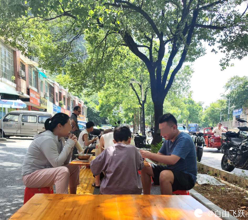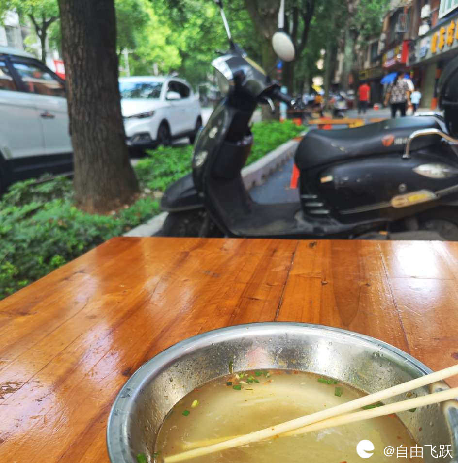 早上我在大树荫凉处吃了一碗美味卤菜米粉,居然也有诗句上头: