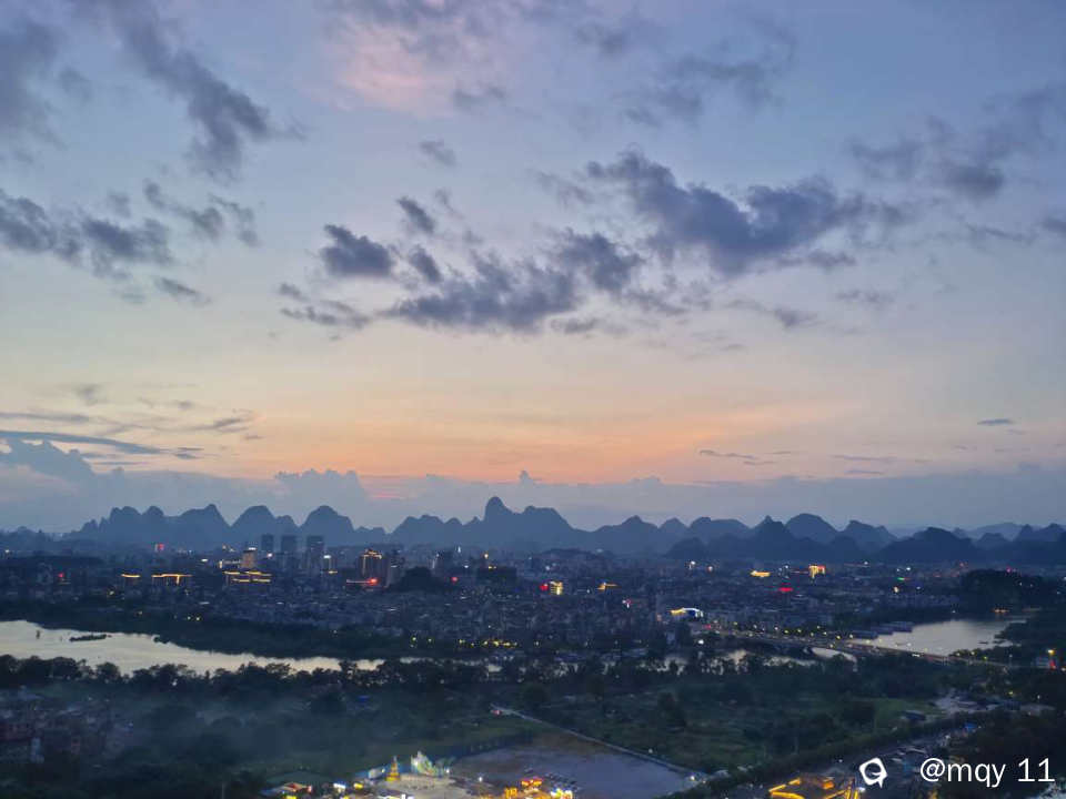 当人生的舞曲,在桂林跳动,当人生的歌声,在桂林唱起,当渔歌唱晚,在黄昏的穿山略过,接近夜幕下的穿山之道,变成了人蚁之盘旋之路,时不时的遇见,遇见陌生的那个你,遇见活泼的那个你,遇见忧郁的那个你,只是近黄昏,只是近落霞余晖。