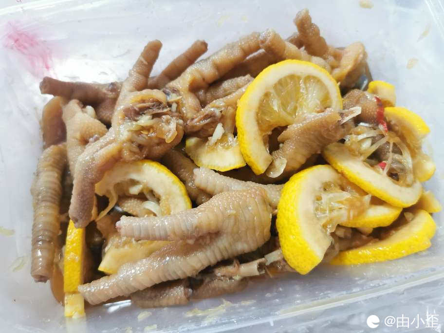 自制凉拌柠檬鸡爪,凑巧提前一下晚做好,刚好派上用场,装一盒。