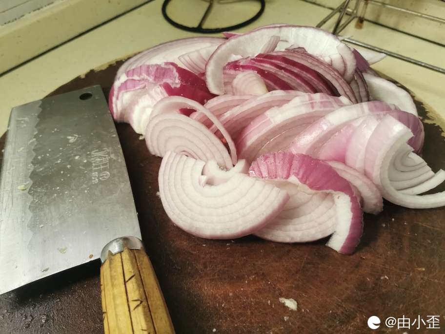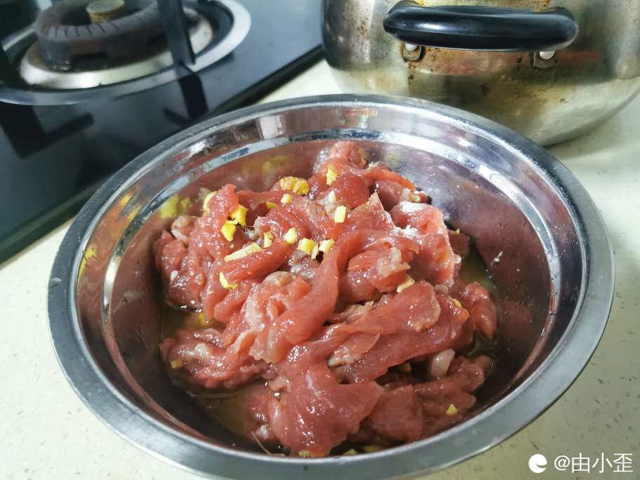 表姐夫下班带了点牛肉,待会清炒一个洋葱牛肉,先腌一下。