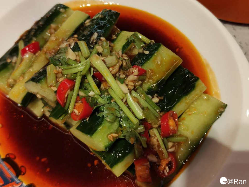 商家还赠送了一碟凉拌小黄瓜,吃起来爽脆可口,非常解腻。