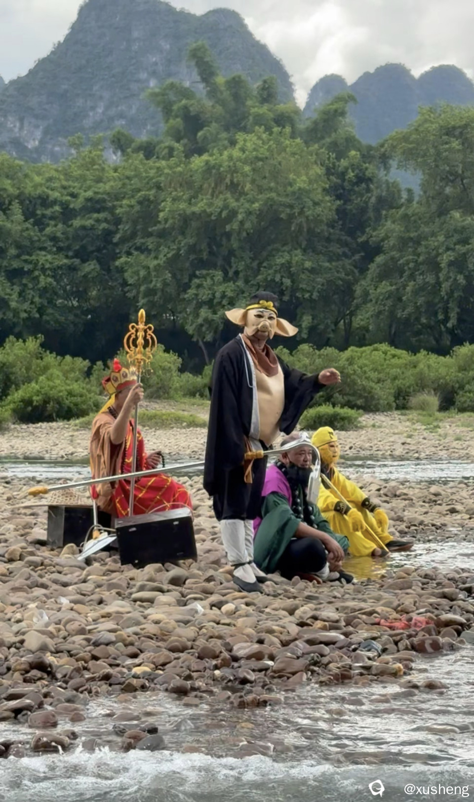 前两天在阳朔漓江边碰到这几个人,不知道是取经路上还是回来的路上,感觉是导航走错路了吧,去印度也不过广西啊!看样子是好几天没吃饭了,八戒肚皮都饿扁了。