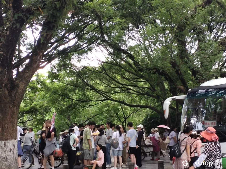 一辆接一辆的旅游大巴,一台台私家车,让象鼻山公园旁的道路,成为一阵阵流动的人潮。