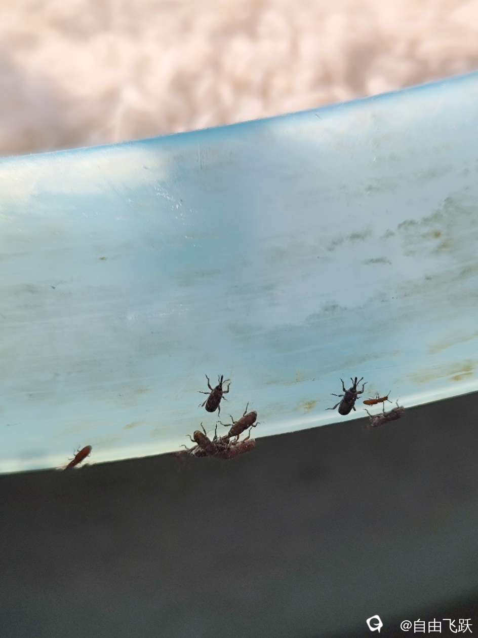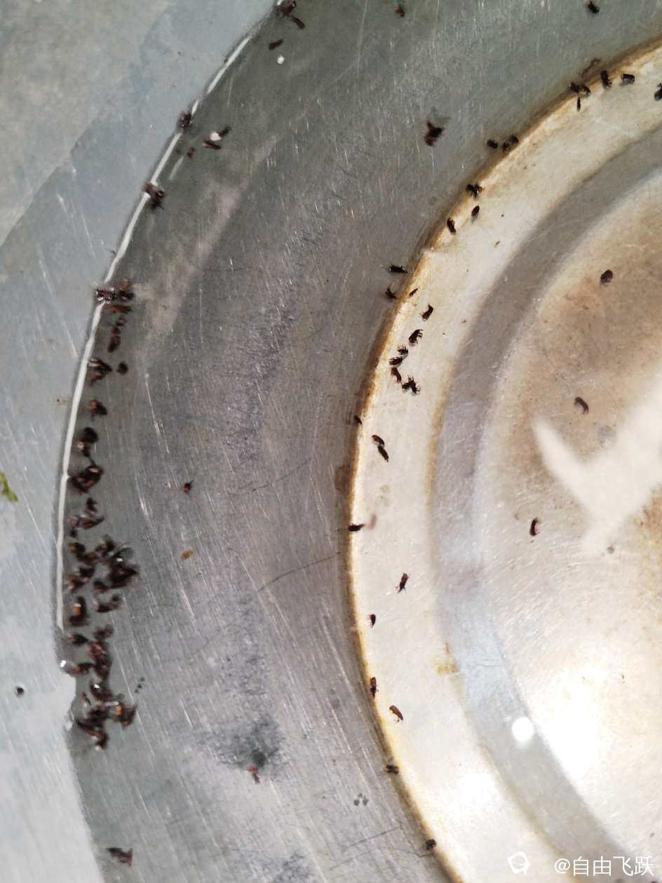 袋装米不能一下子买太多,这袋米买回来存放了三个月,今天拆封时发现保质期六个月,过期一个多月,开袋后出现了密集大逃亡,无数象鼻虫蜂拥而出,四散奔走,又不会飞,行动迟缓,拿盆水让它们游一下泳凉快凉快吧。