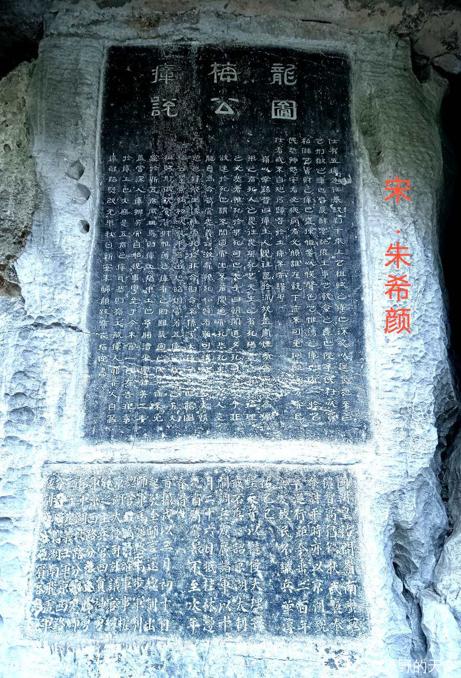 这是北宋末期宰相李邦彦(字,士美)的书法。靖康之耻之后,北宋政权灭亡,在南宋政权建立之初他被贬到桂林。他写的“龙隐岩”三个字,气势雄浑,厚重沉着,达到了书法艺术的高峰。