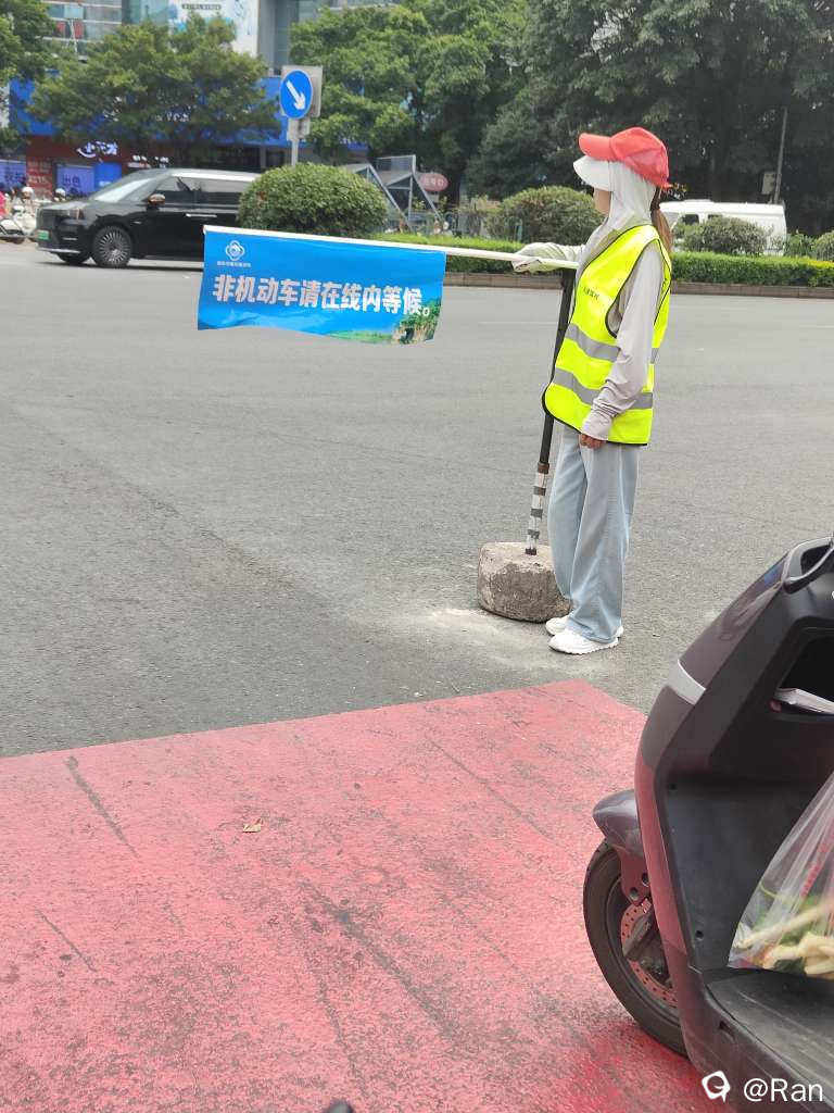 最近经常看到马路上有一些人拿着小旗子,穿着小马甲在做交通引导,应该是驾校的学员吧,昨天大太阳,今天下着雨还要站着,突然想起我之前也是这样站在路口提醒路人戴安全帽,不过我们那边好歹还有个大棚子遮一下