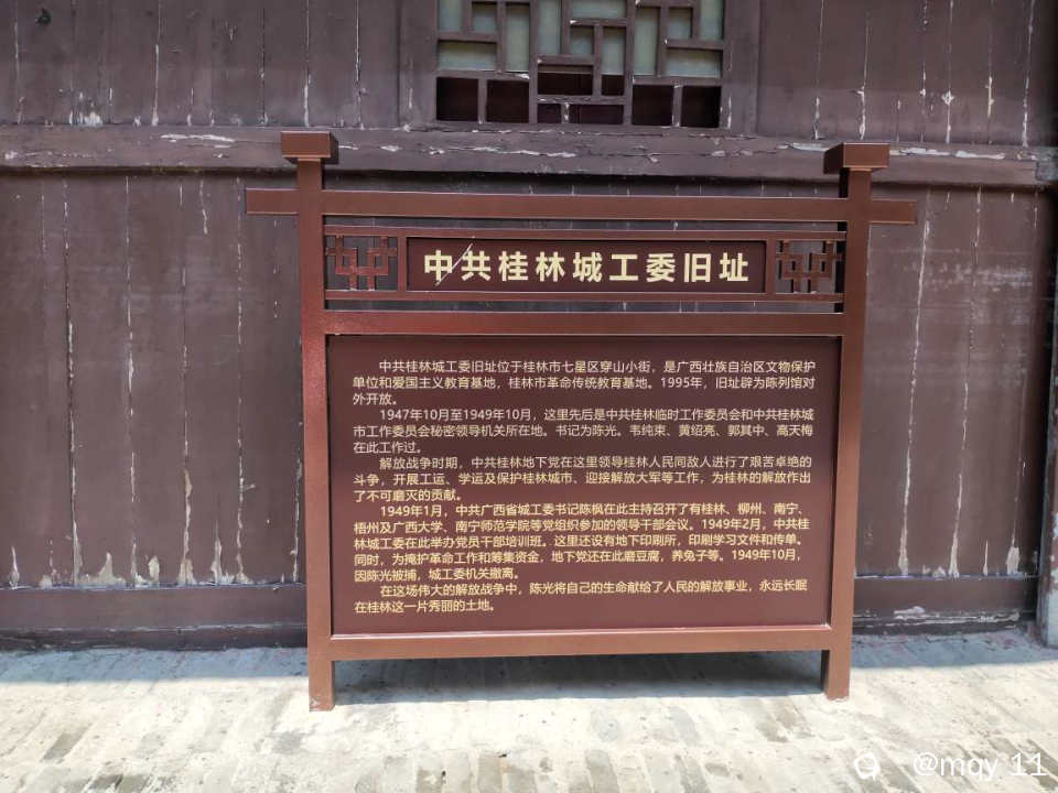 而城工委,陈光当年便是桂林地下党的领头人之一。在桂林城工委建立初期,他任书记一职,负责开辟桂林地下各项工作。        以前我们都学过“星星之火可以燎原”,而这座红房子,也就是桂林的一个临时城工委,起初仅有党员10名,开展工作。 加上当时桂林处于国民党桂系统治中心,所以桂林地下党的斗争和生存条件可以说是非常恶劣的。