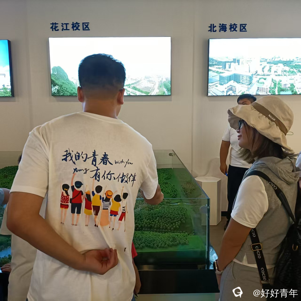 一群穿着印着“我的青春,有你做伴”文化衫的老校友,在展厅里待着。墙上老照片和文字,把以前的岁月串起来,大伙要么听讲解,要么唠唠回忆,在时光里倒回去,把青春片段又捡起来,让校园故事接着流淌。