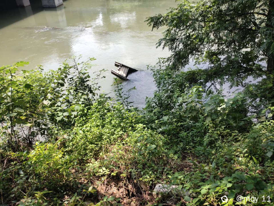 [本地杂谈] 秋老虎太厉害,穿山一条木船跑河里面“泡澡”