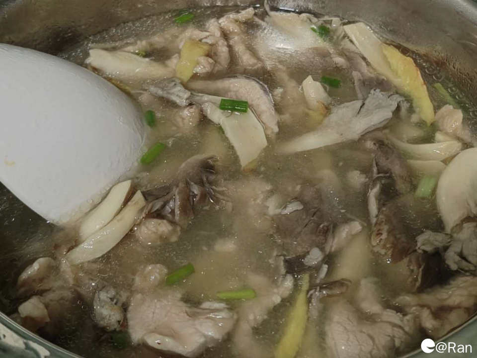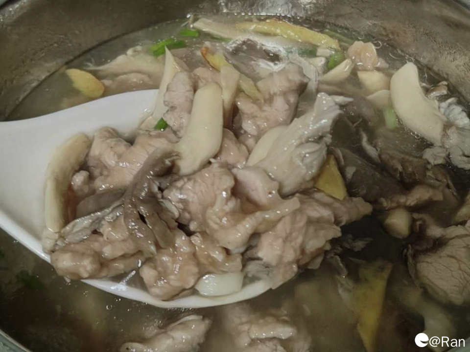 一碗热气腾腾的平菇滑肉汤就出锅了