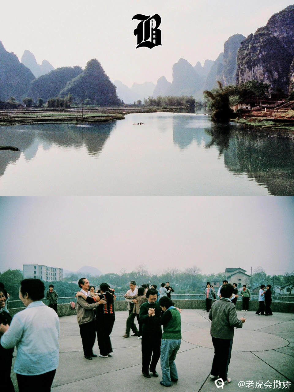 1980年前后桂林的旧照片,城市在栖息,澄净的山水风景、湖边的“广场舞”,人民享受悠闲的生活。原来蘑菇亭的顶还是可以走上去的,第一次知道毕竟对那个年代的事情印象不深。