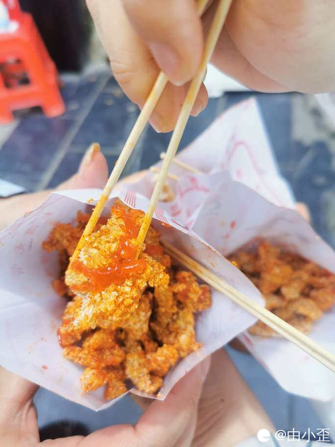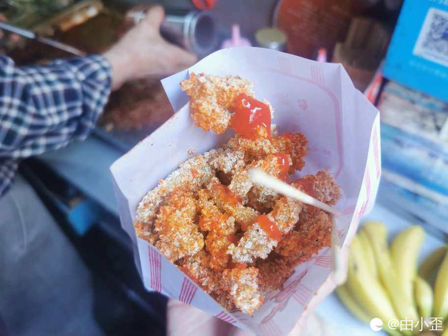 这家做台湾鸡柳的旮旯小店,掐指一算,真卖了有二十五年以上了。在我小学六年级那时候,大概一到两块一份,现在是五块一份,好大一份,薄利多销,一天能卖好多份。我听我老家的朋友说,就是这家连招牌都看不清的旮旯小店,这对老夫妻修了一栋房还买了好几个门面,我现场向他们求实,老板挥着手辩驳,生意难做,混口饭吃!