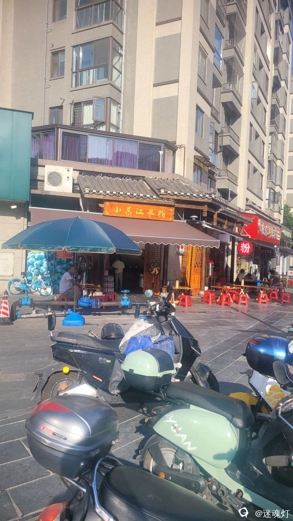 现在这个路口4家米粉店。原来东江口一骑绝尘。现在小东江拼命赶(带快餐)。佳友温吞水度日,另一家想尽花招(近期推出冬瓜香芋汤粉)。米粉行业的卷在这里充分体现。可惜漓江郡府在丹桂、玉桂府这两个楼盘设计施工上缺了手笔,门面没怎么考虑餐饮。否则,应该开几个像样的饭店酒店,照福这一带居民。