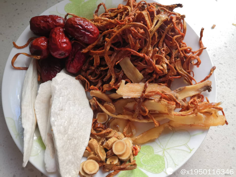 3· 准备虫草花等煲汤食材。“虫草花"并非花,实质上是虫草子实体,而不是冬虫夏草子实体。培养基是仿造天然虫草所含的各种养分,它属于一种真菌类。虫草花含有丰富的虫草多糖(包含虫草酸)、蛋白质、18种氨基酸、17种微量元素、12种维生素: A、B1、B2、B6、B12、C、D、E等含量高于菇类。它适合与许多食材一起煲汤,抗氧化,防衰老,跟冬虫草一样能提高人体免疫力。