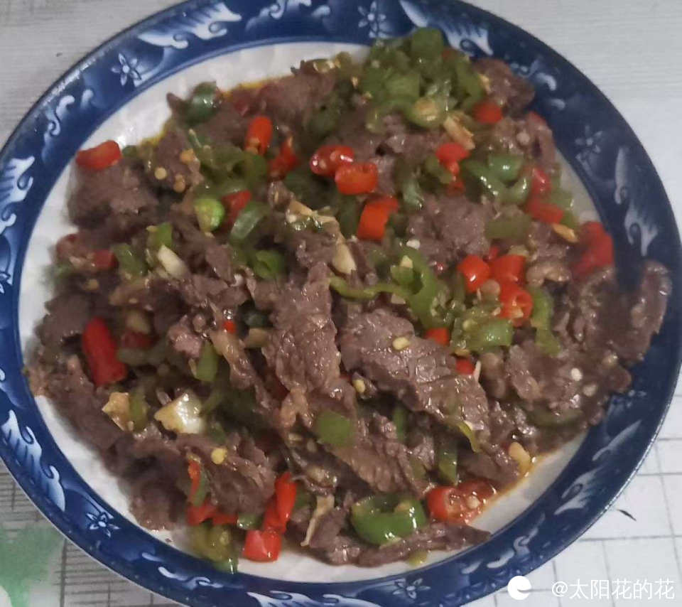 原来瘦牛肉炒着吃口感也好嫩,感觉用青椒和红泡椒炒牛肉真是太好吃了……