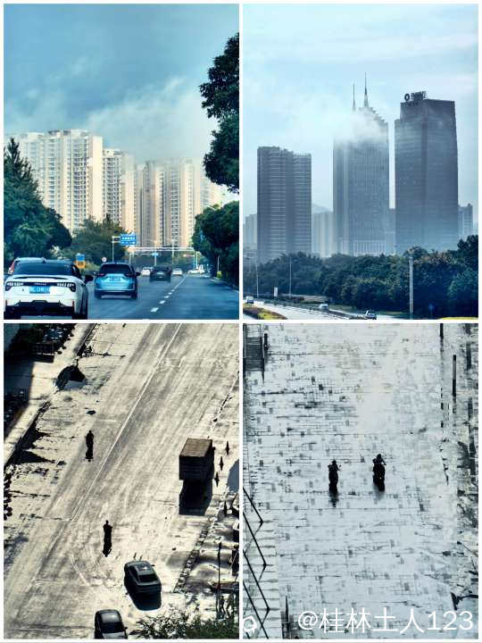 清晨通勤,朝阳为江面镀上一层碎金,象鼻山在薄雾间若隐若现,恍如幻境;