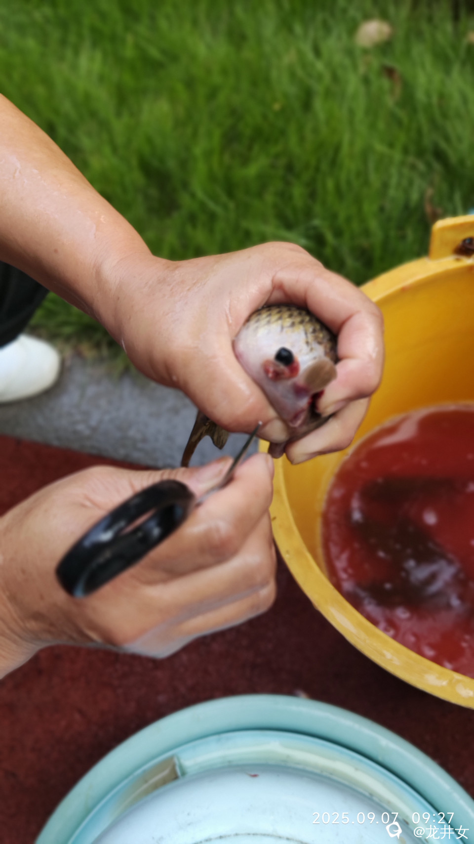 她们讲只把鱼胆取出来就得了,禾花鱼不用开膛破肚。