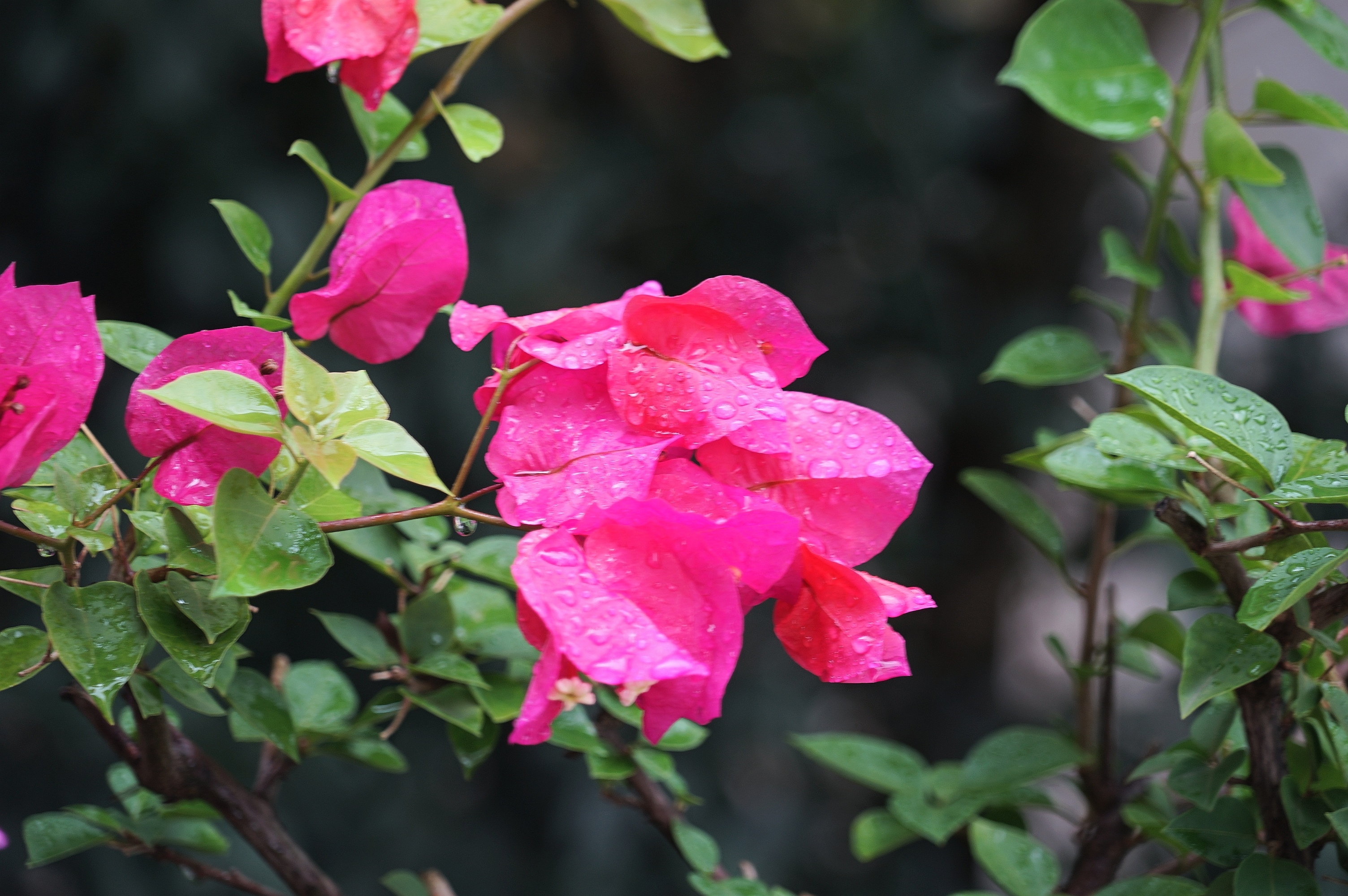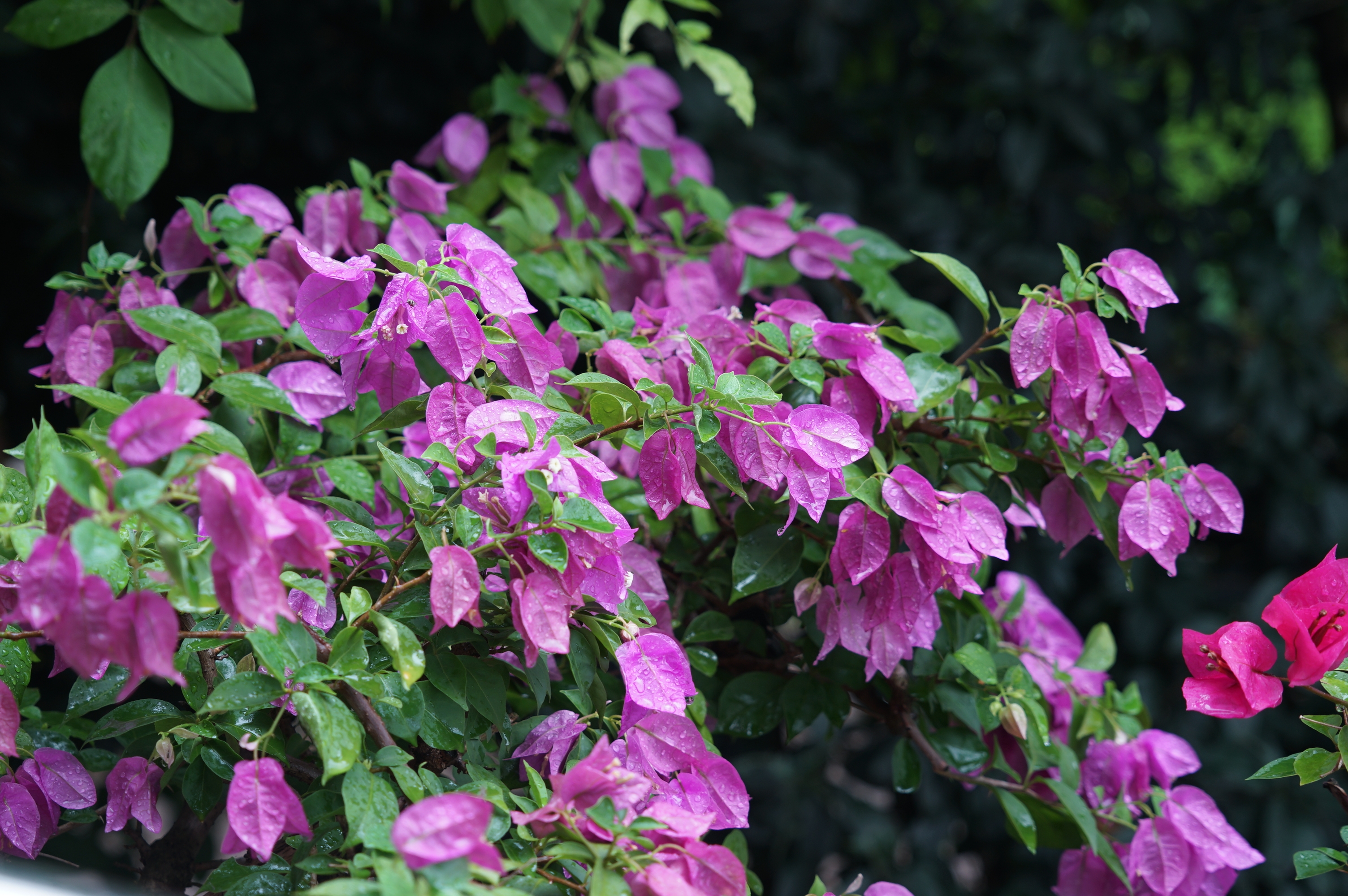 桂林连续高温,气温都在36度,骄阳似火,赤日炎炎。花在灼热的烘烤下,失去了生机,一场喜雨,退去了燥热,带来了清凉,花在雨中犹显骄娆。