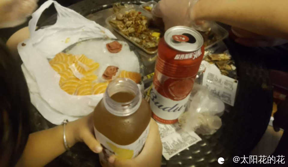 晚上准备睡觉被叫起来吃宵夜,第一次吃潮汕生腌、三文鱼、鹅肝,我是来凑热闹的,吃不习惯这些生的东西,尝了一口也算是吃过传说中的“潮汕毒药”了……