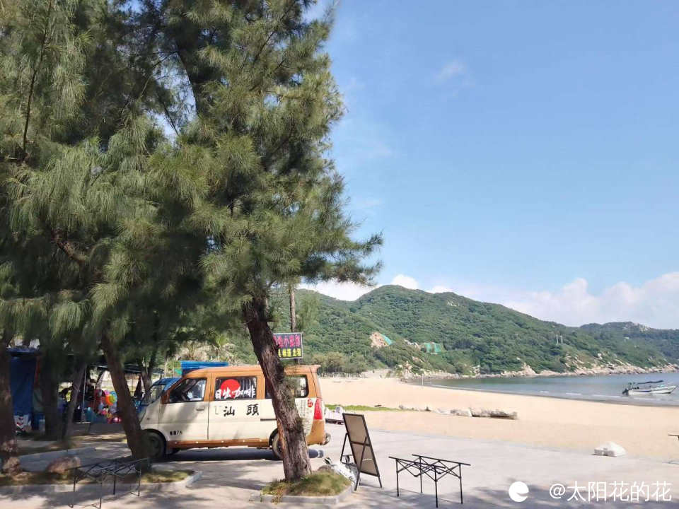 吃饱继续去海边逛,来到了一直想去的竹栖肚湾,这里的海滩不能下水游泳但树比较多,很阴凉,吹着海风特别凉快,好适合铺着野餐垫坐在树底下喝茶吃美食……