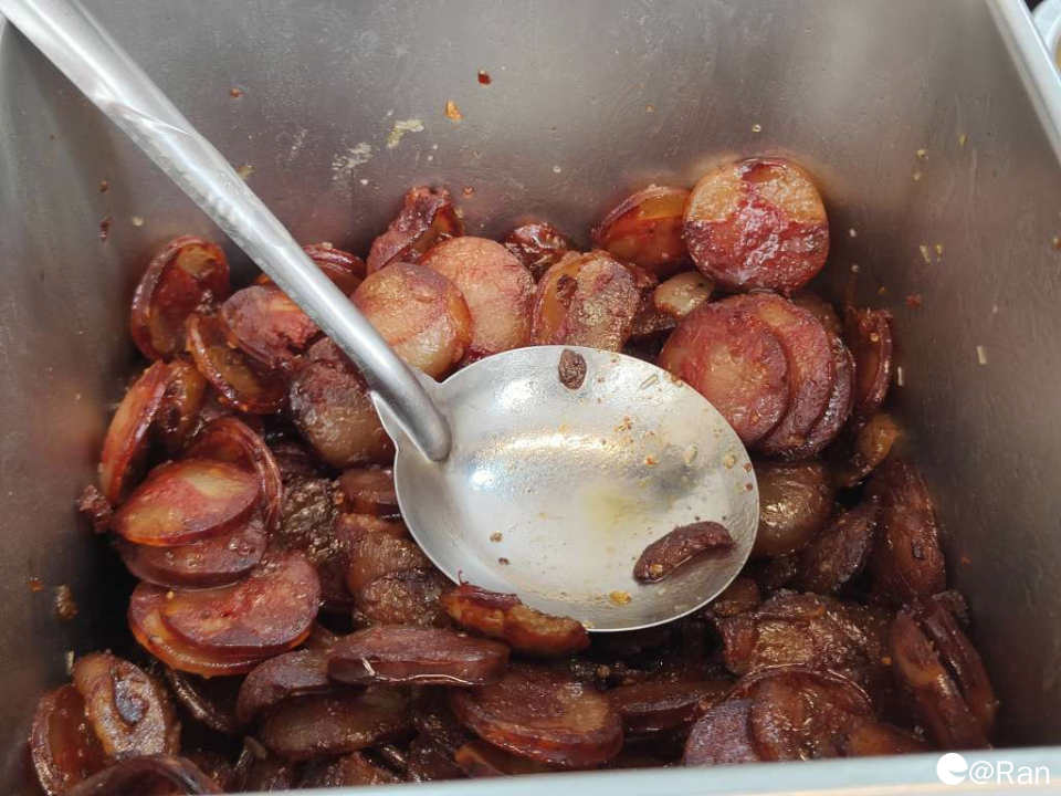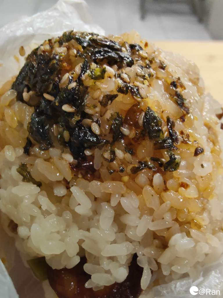 上面还加了海苔芝麻碎,吃起来口感更加丰富,糯米也是颗粒分明,配上一口腊肠正正好,不会感觉很油腻,就是脆脆放太久被焖软了,整体来说还是很不错滴!