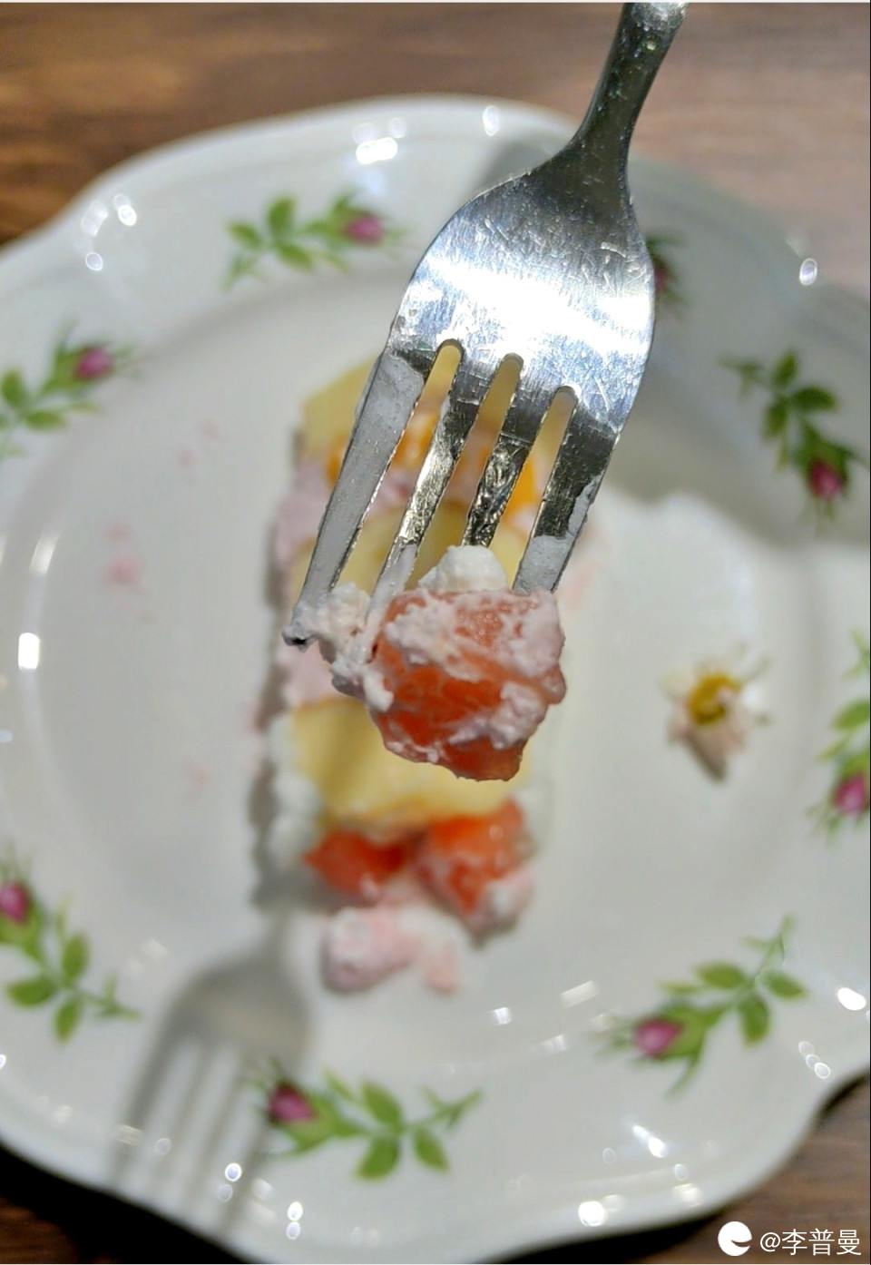 不得不说,贵的蛋糕还是不一样的噢,蜜桃果肉,罐装食品没有齁甜,能闻到蜜桃本身味道,选料还是很厉害的。