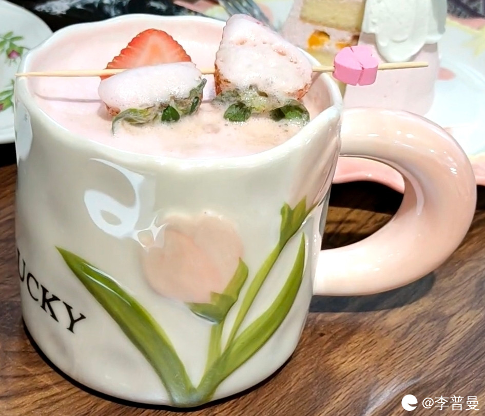 听说喝咖啡是小资生活,今天允许本牛马再奢侈一把吧,犒赏做策划的日子。来一杯也是粉色系的草莓丝绒拿铁。