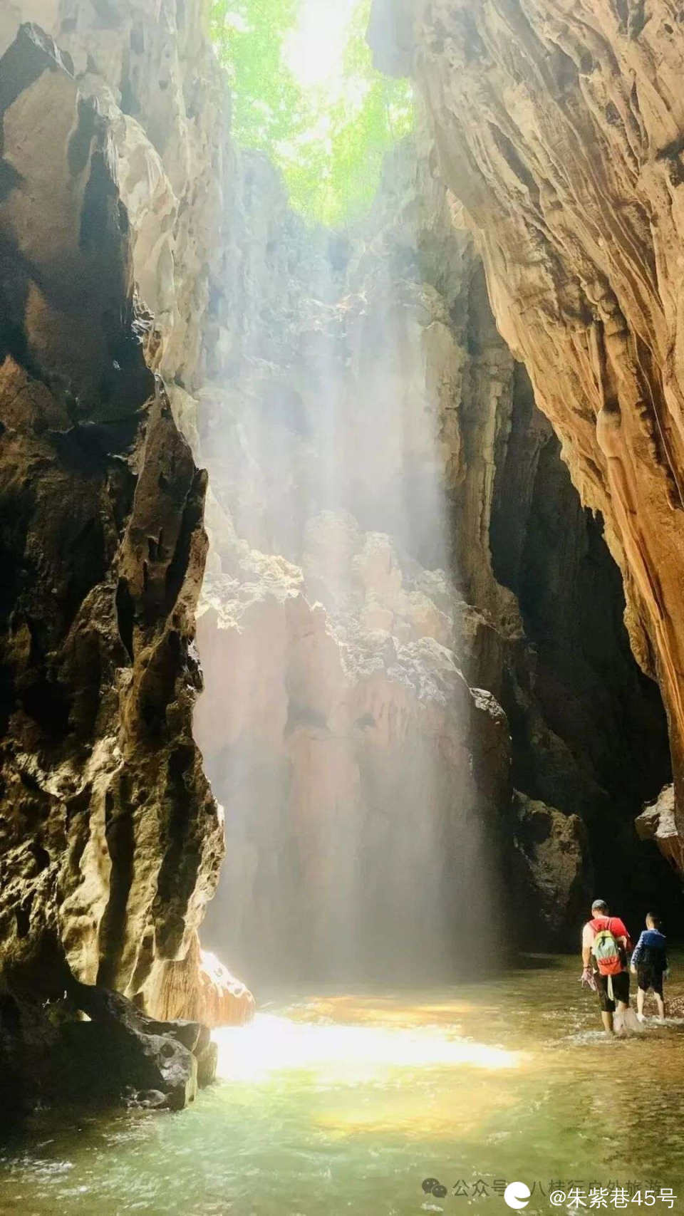 顺着古村道徒步二十几分钟方可到达溶洞入口,进入洞口30米便可看到头顶的天坑。射光出现的时间在上午9:00~10:30之间。