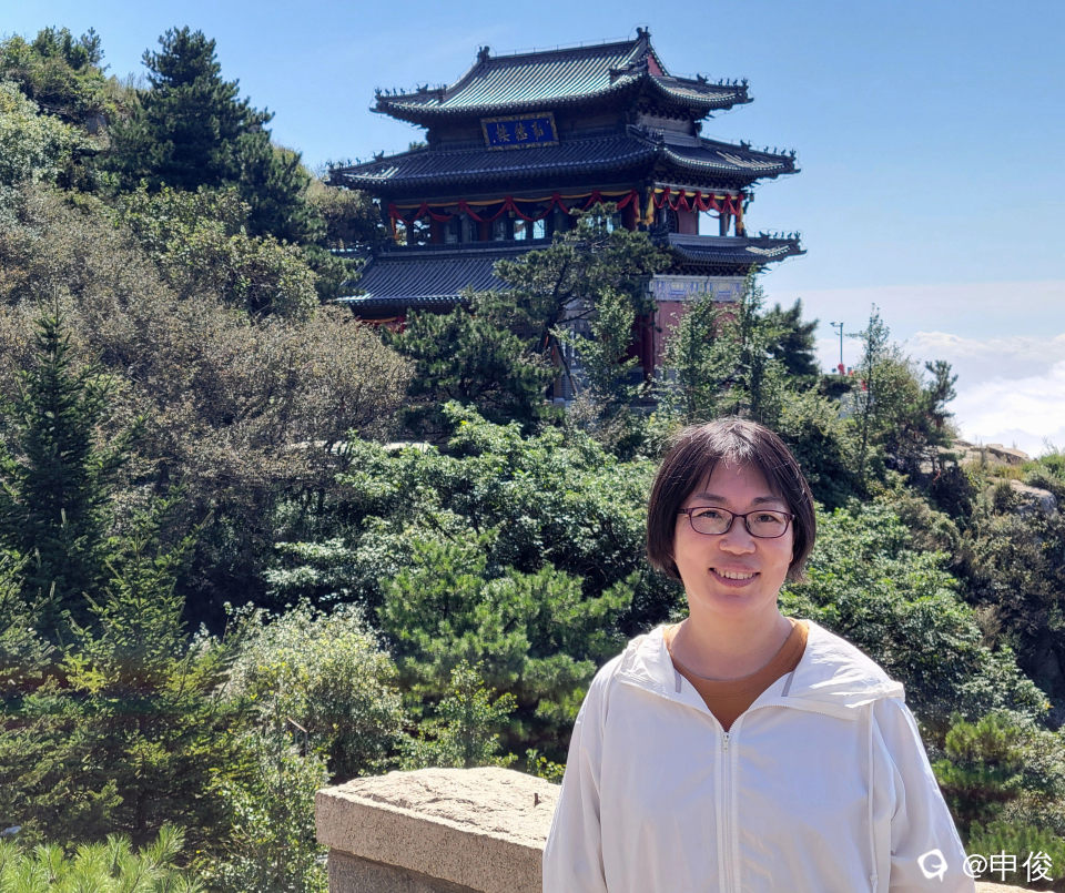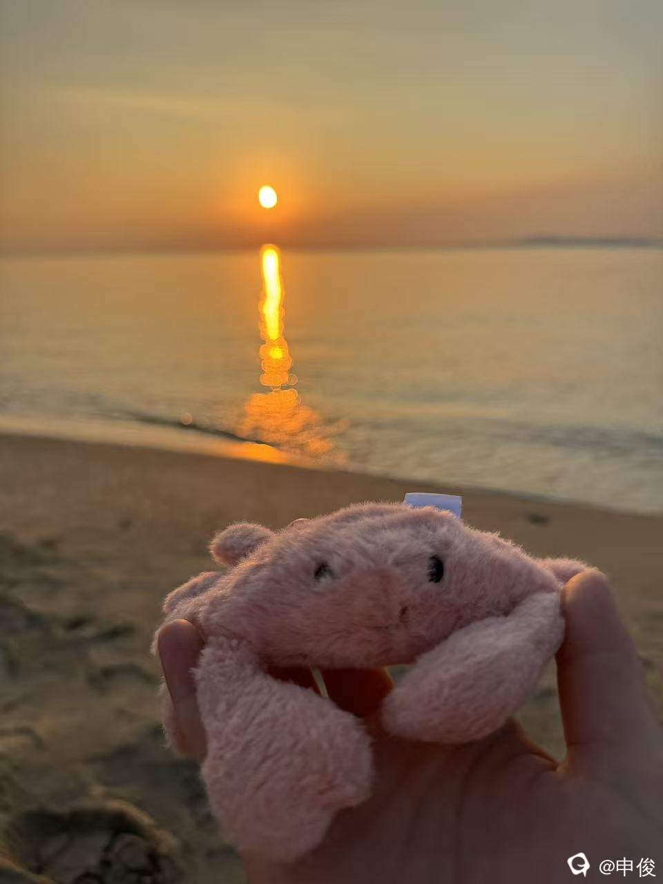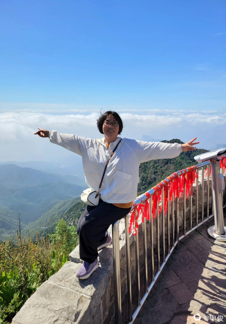 第一次在火车上看日出:对面窗外雾蒙蒙的天空中见到中上方有一片红晕不知过了多久,偶然一抬头,漂亮的红彤彤圆挂出来啦[哇],只一会儿,山挡住了它我便耐心等着,果然,绿皮火车慢得好,更大一点的红太阳有了一点光芒[太阳]又被连山遮住了,山也有了金边[让我看看][鼓掌][鼓掌]就听乘务员在喊:泰山到了!