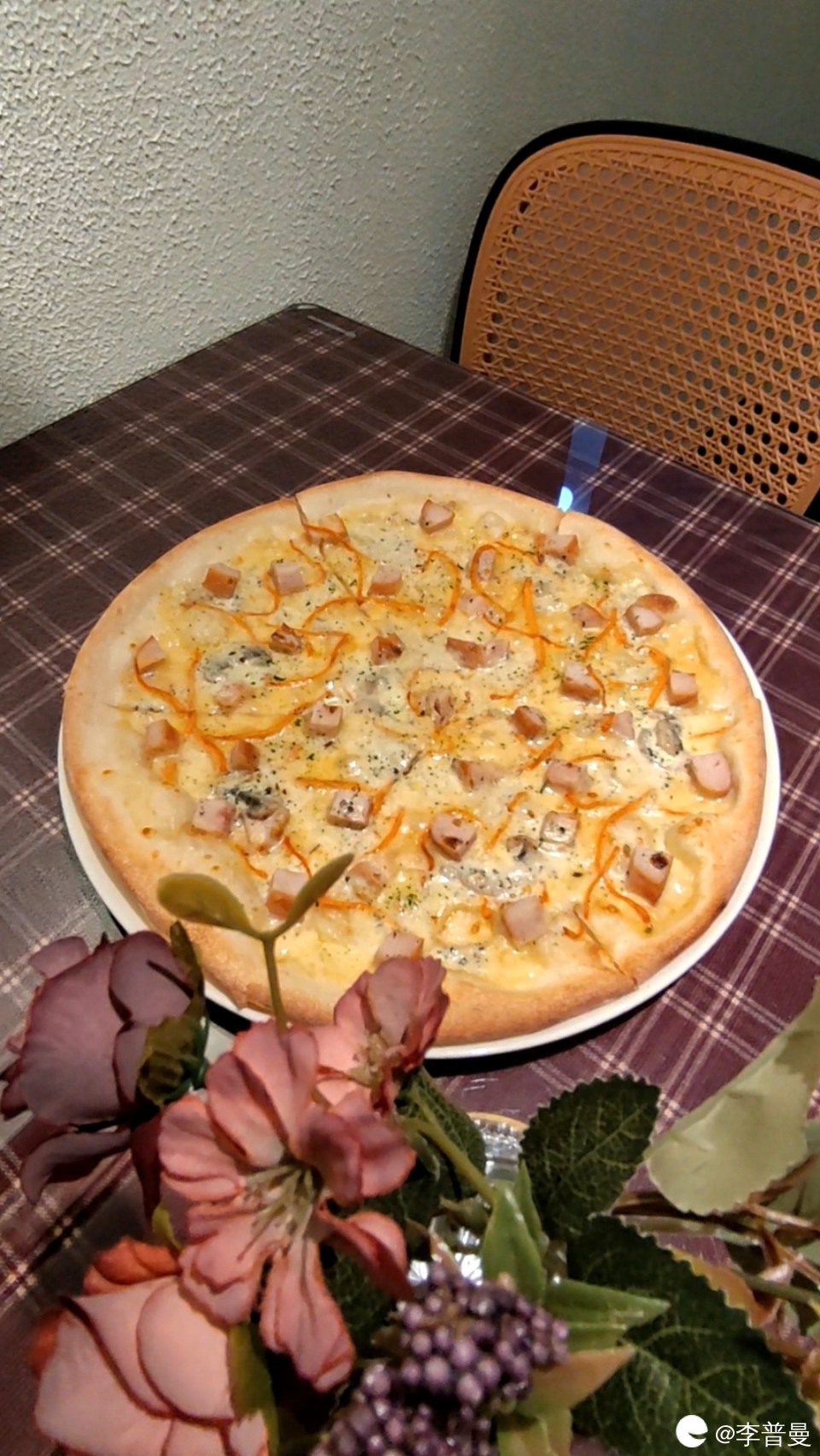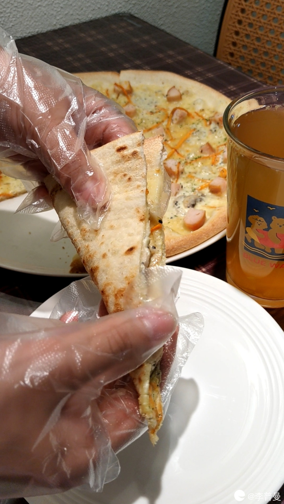 黑松露鸡肉披萨,小份还是很大。桌面小提示说,薄胚披萨需要叠着吃,也是学会了。建议下单时可以再加一份芝士,这样拉丝更明显。两块就抵一顿饭了,真的非常非常饱腹!