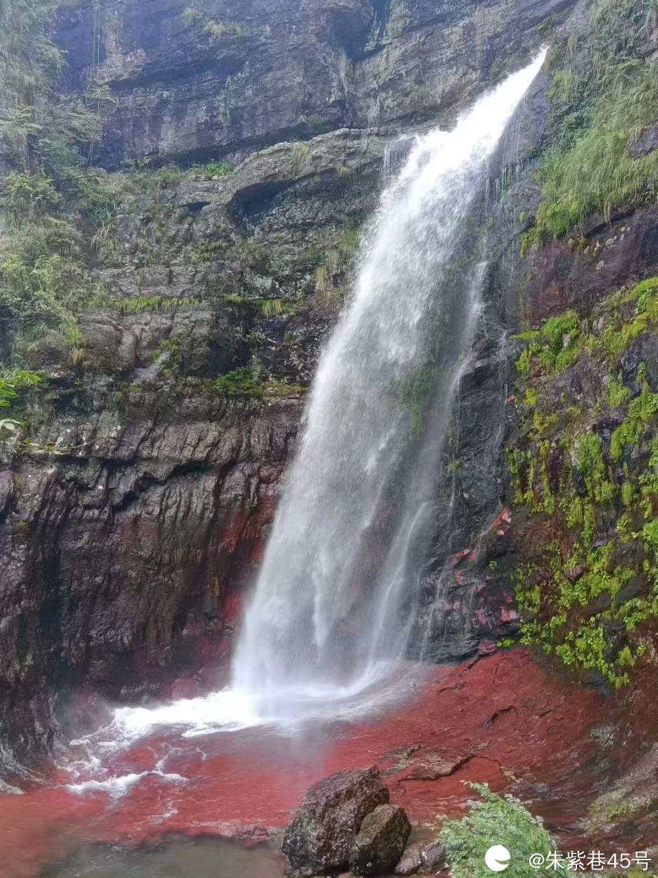兴安漠川红岩瀑布深藏于漠川横山界村的山林里,因地处横山界村,叫横山界瀑布,也因瀑布周边岩石成红色,又称红岩瀑布,水流撞碎在赭红色岩壁,溅起碎玉般的水花,雾气漫过石壁。阳光穿过时,虹光与红岩相映。