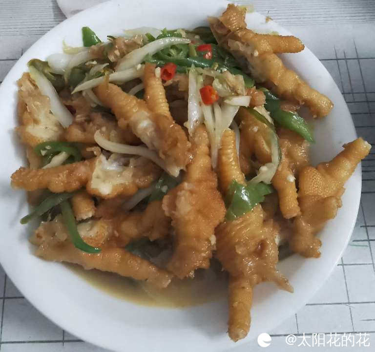 中午吃个简单的青椒炒鸡爪……