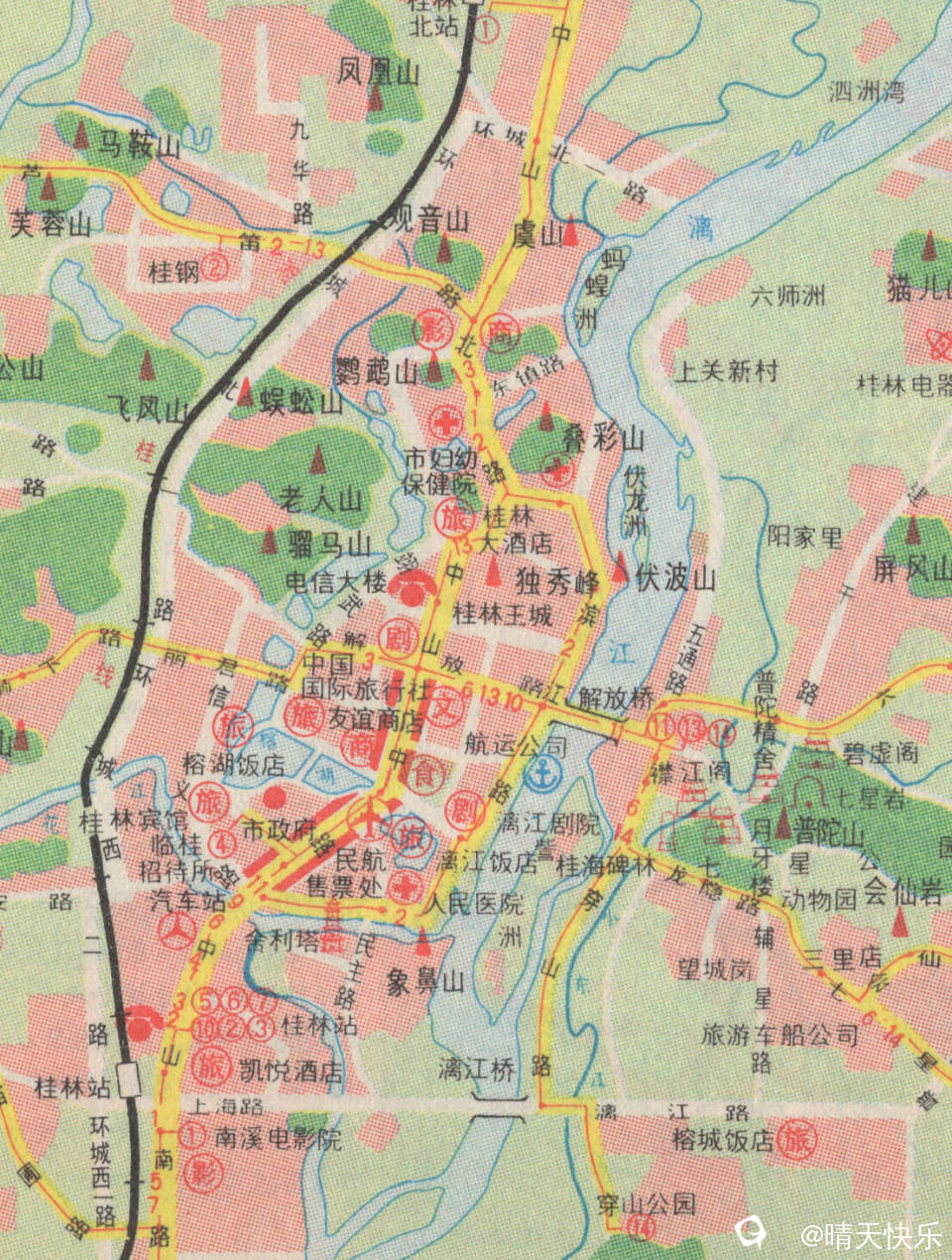 漓江剧院呢?航运公司(好运来酒店)甲天下广场东边的旅游车船公司?