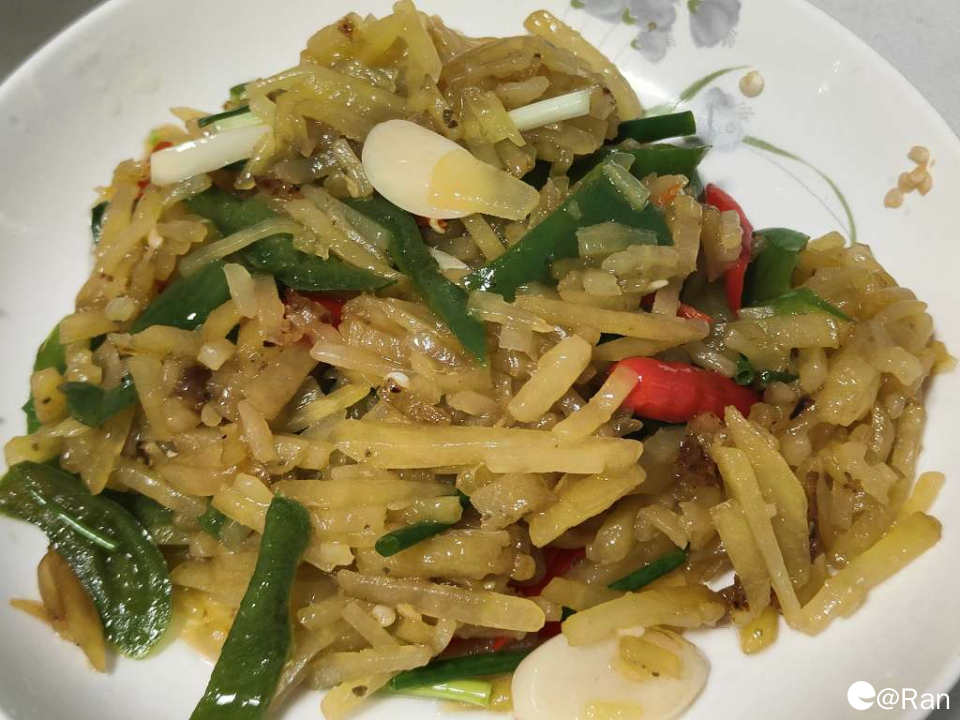 朋友做的麻辣土豆丝,里面放了花椒粉,很新奇的味道,还挺好吃的。
