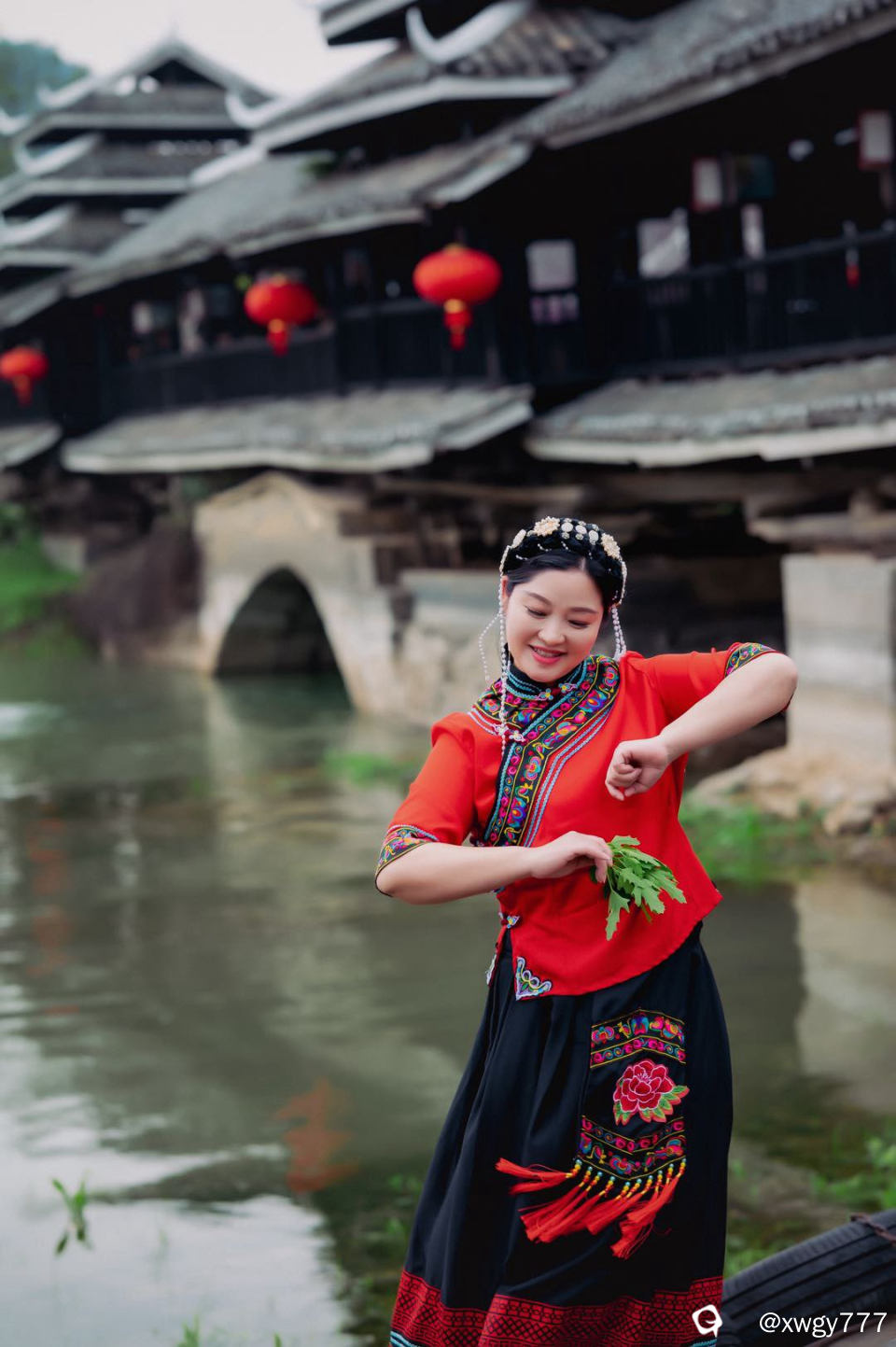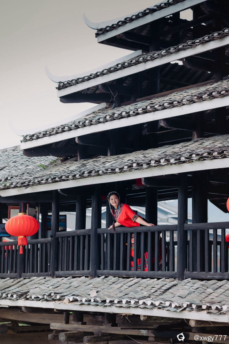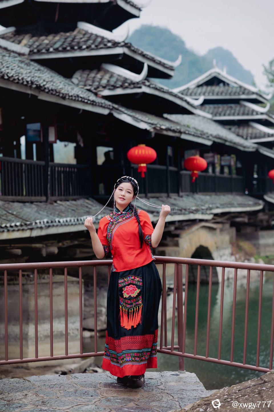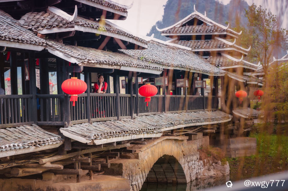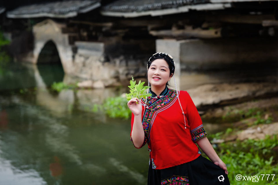 小姐姐真美,与风雨桥好配。